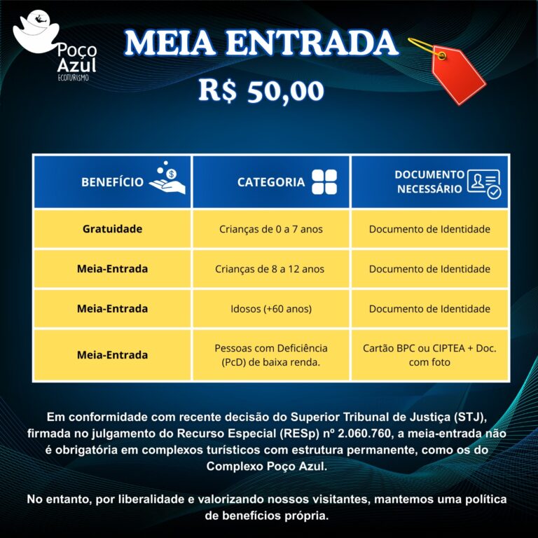 Taxa Encanto Azul: R$ 50,00 por pessoa