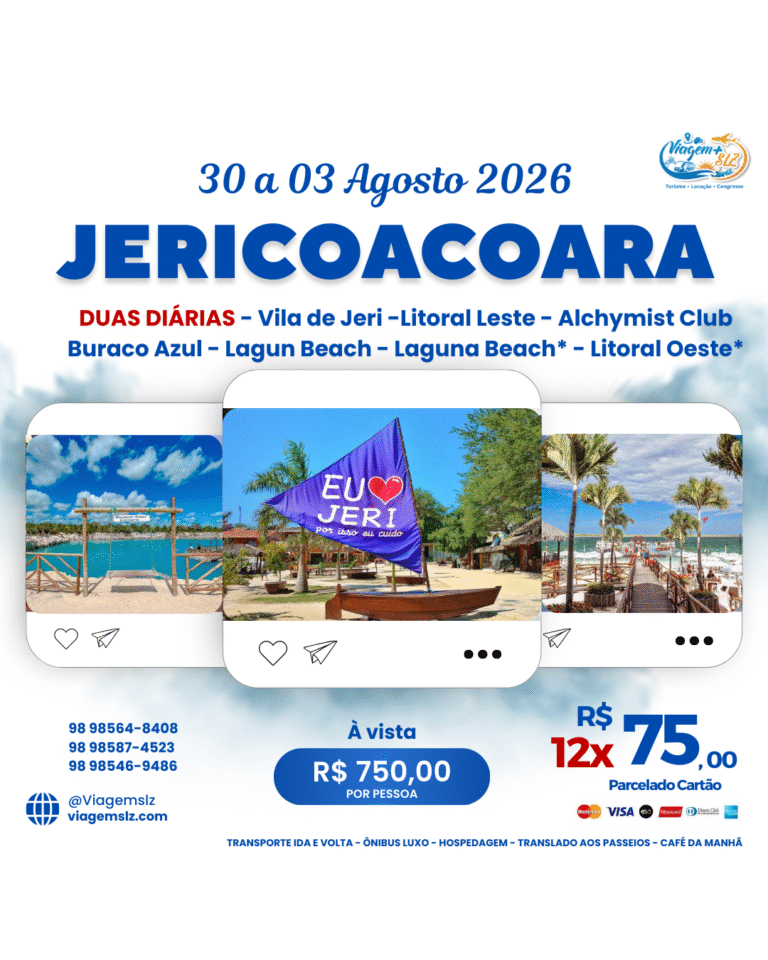 Embarque em São Luís – MA, com saída do Posto Shell Tirirical às 19h.